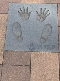 館外のスペースではアトムやキャラたちの手形足形がレリーフとして埋められてます